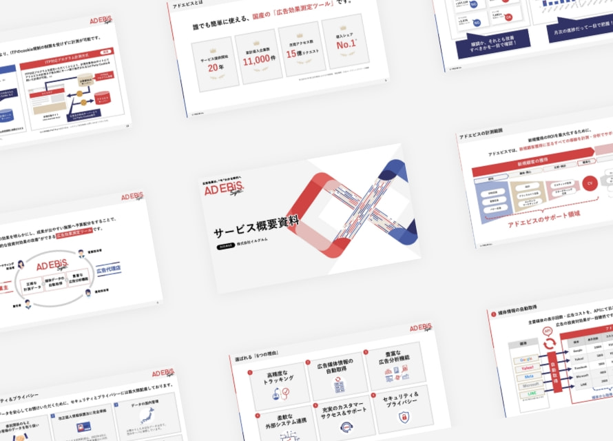 アドエビスの概要をお伝えする資料から、詳しいサービス紹介資料、活用事例まで幅広く資料をご用意しております。ぜひ一度ご覧ください。