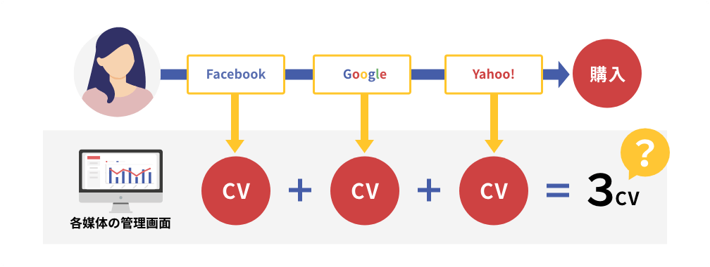 媒体の管理画面を"別々に"確認している場合、ユーザーの行動を一つの流れとして捉えることができません。
