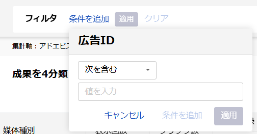 フィルタ条件の広告ID文字数上限を変更